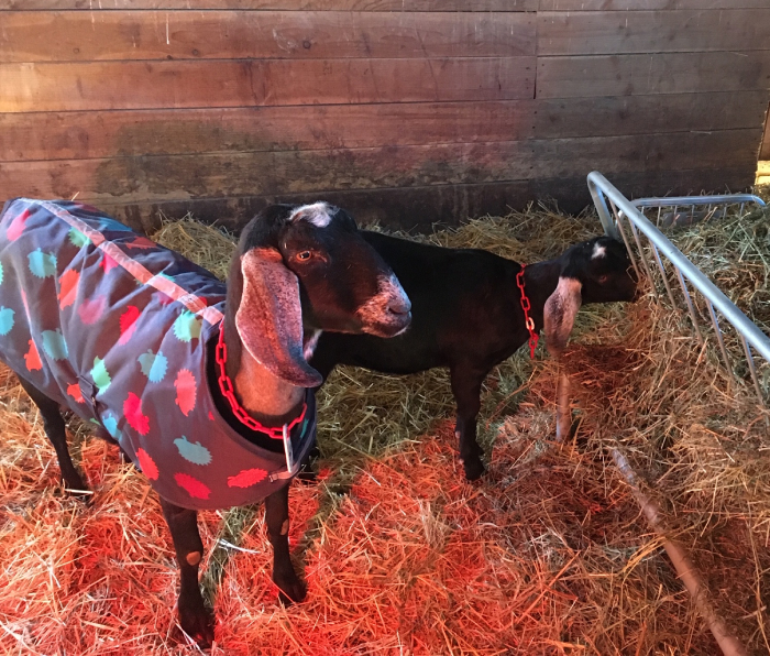 1. When they’re sick or recovering from an illness: I had a doe get very sick one December and she was in the hospital for five days. Thankfully she survived, but she lost a lot of weight during that week and also had several shaved areas where she’d had IVs inserted and ultrasounds done. When she got back to the farm, I ended up keeping a coat on her for most of the winter until she had gained the weight back.
