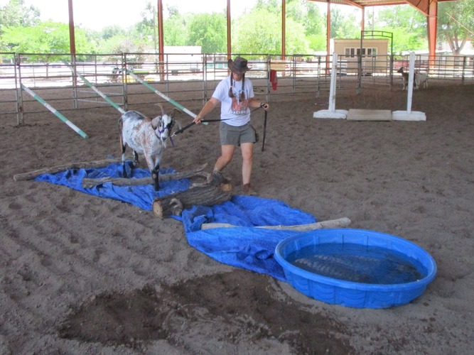 Over the fake river and through the hay twine; it’s a trail class for goats!