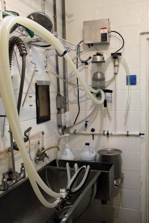 - A clean place to milk that’s separate from exposure (particularly during milking) to dust from pens, manure piles, and feed; is easy to keep clean and is kept clean; is well lit; and has hot and cold running water. (Inspected facilities will have a more extensive list of requirements.)